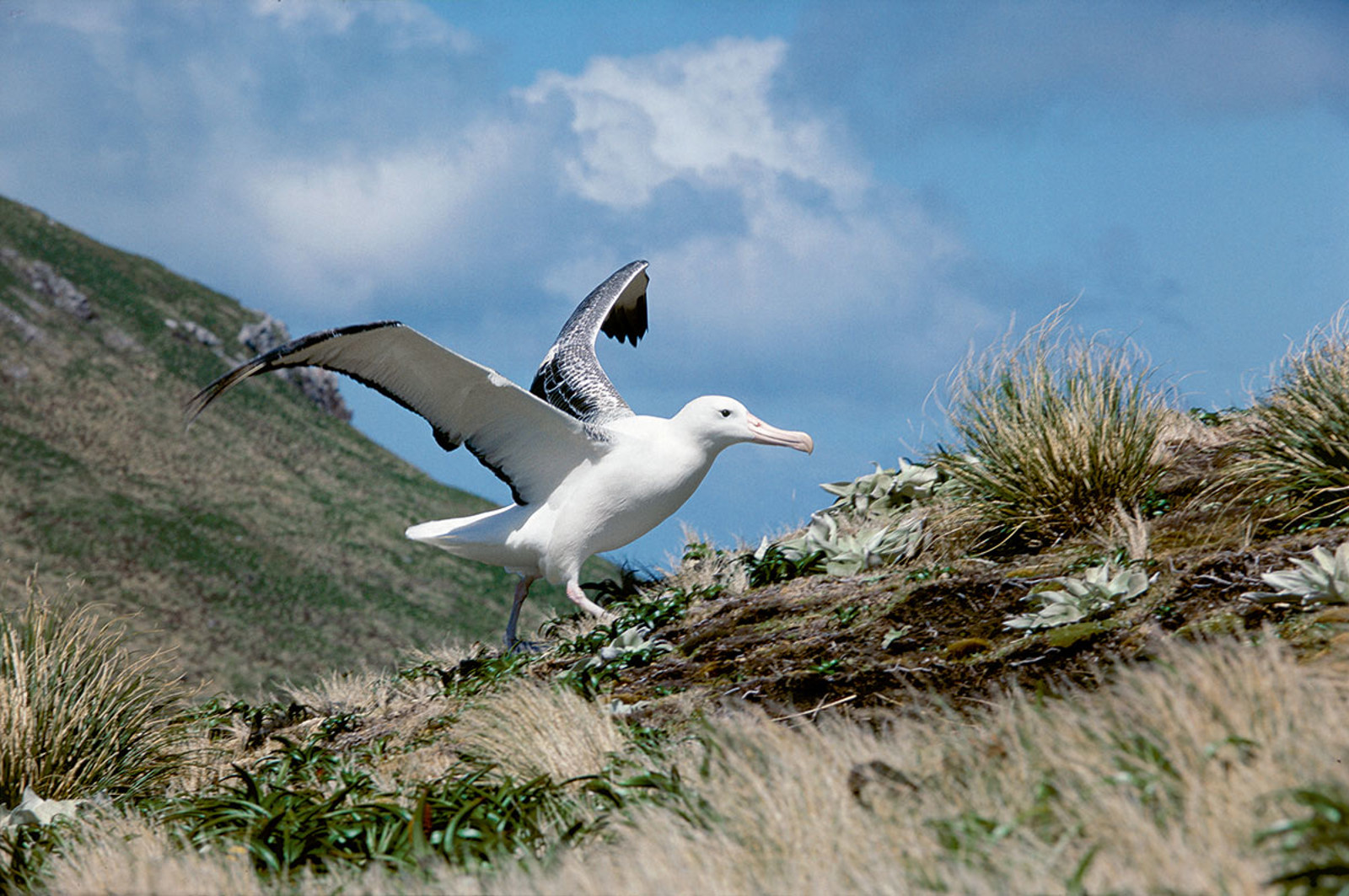 Während 17 Albatros-Arten auf der Südhalbkugel und drei konstant im Nordpazifik leben, kommen diese Vögel im Nordatlantik überhaupt nicht vor. Einzig der Schwarzbrauenalbatros verirrt sich zuweilen in nördliche Breiten, so etwa ein männliches Exemplar, liebevoll «Albert» genannt, das seit über vierzig Jahren im Bereich der britischen Inseln einsam auf ein Weibchen wartet.